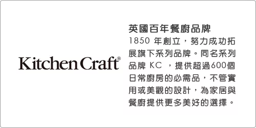 1850 年創立的英國家族企業 Kitchen Craft,在創始人努力下,成功拓展旗下的系列品牌。同名系列品牌 KC,提供超過 600 個日常廚房內的必需品,不管實用或美觀的設計,為家居與餐廚提供更多美好的選擇。