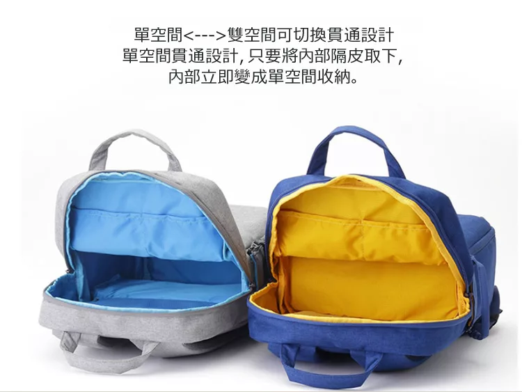 █內含雙容納空間的後背包,平時上下層可放一般用品,如攜帶相機時,上下兩層。