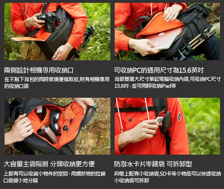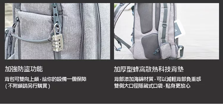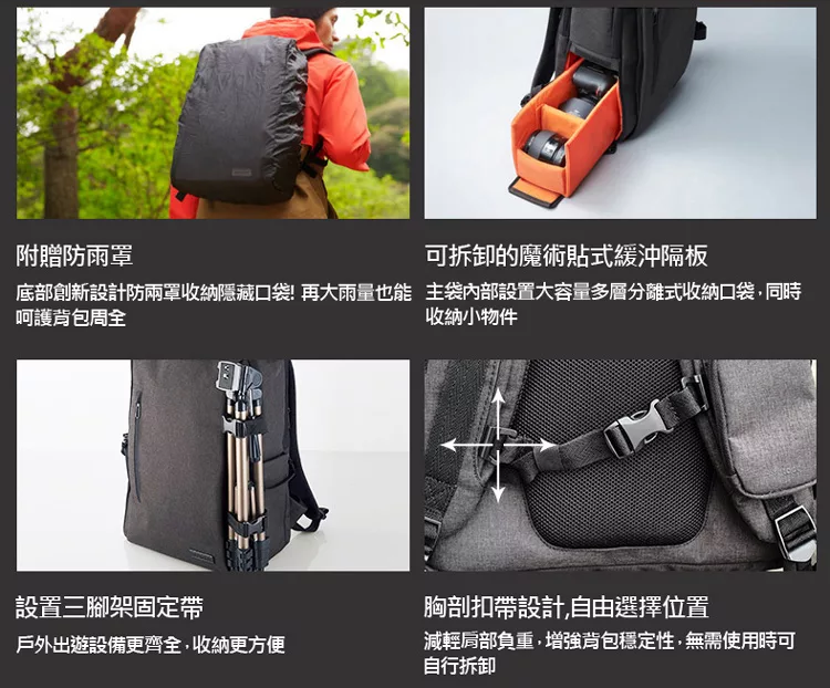 無論是平日當通勤包使用、或是周末帶著心愛的單眼相機外拍時的防衝擊包,