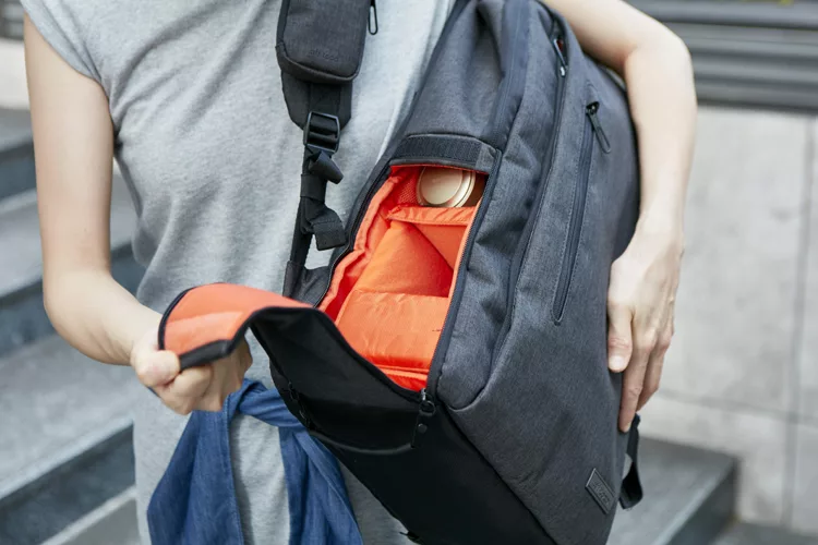 不用整個包包拉鍊拉開也能取出相機!