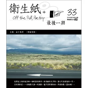 出刊滿八年的《衛生紙+》以第33期告別世界,精銳盡出。唐捐諷刺偽善道德觀的〈孝男為母買麵記〉、陳令洋把語言癌當補品吃的〈我要在上風的地方做一個吸菸的動作〉、宋尚緯演繹海濤法師名言的〈假的〉、鴻鴻針對戴立忍自白事件的回應〈沒有別的愛〉,以及書寫寶可夢現象的質南與冠毛。還有眾多衛生紙詩人如飛鵬子、eL、蔡仁偉、瞇、顆粒、木瑕、小令、阿芒、許赫、張詩勤、謝旭昇等人火力全開的新作,及新馬詩人郭詩玲再接再厲的幽默諷刺。還有香港詩人淮遠寫〈懦夫的百米跑〉、廖偉棠詩贈達賴喇嘛和飲江、日本旅台詩人倉本知明寫〈切切切〉,都是一個時代的記憶。同時刊出紐約前衛詩人傑洛姆?羅登堡的左翼名詩〈致殘酷的大多數〉,更升溫針對這個階級傾軋的世界批判之火。