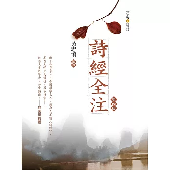 本書雖力求簡約,但本著「詩無達詁」之故,各條注釋未必只取一說,各篇主題因顧及《詩經》本具經學與文學雙重性質與價值,而採取先據詩尋義,後列詩序之說,再做整體說明的方式,希望能讓讀者明白。