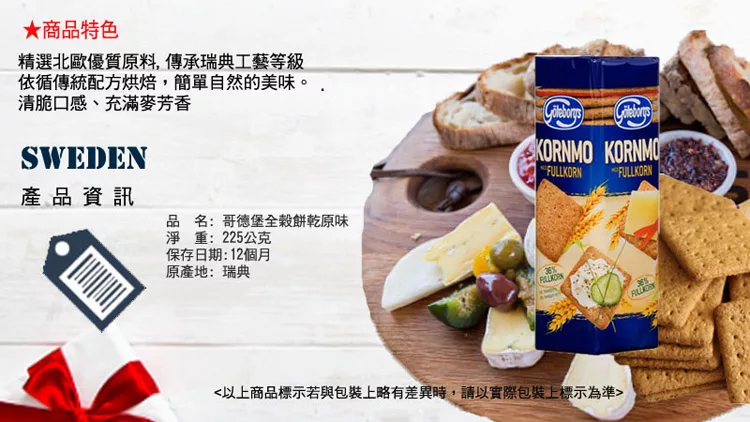 商品推薦:瑞典【GOTEBORGS】哥德堡全穀餅乾-原味