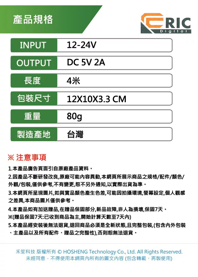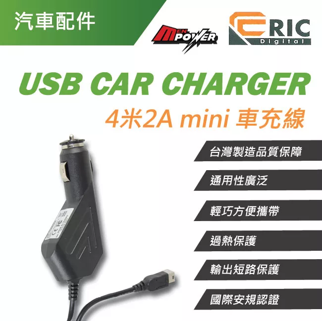 商品推薦:Mini USB 車充線4米2A 行車紀錄器專用車充