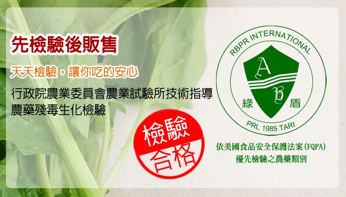 由產地選購後,經農會超市中心以快速檢驗(RBRP)技術,進行二次檢驗、飾選