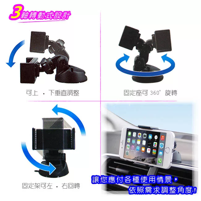 3軸轉動式設計可讓您應付各種使用情景,依照您的需求調整角度;球型固定座可360°的旋轉,讓您在直看、橫看中變化自如;手機高度可垂直上下調整,契合駕駛人的真愛橋-臉書把妹技巧在真愛橋學會後,進步超多水平視野,確保行車安全!!