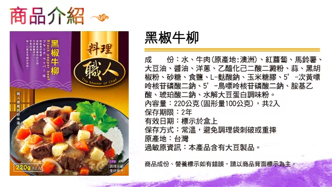 商品推薦:【聯夏】料理職人 - 黑椒牛柳(220g x 2入)