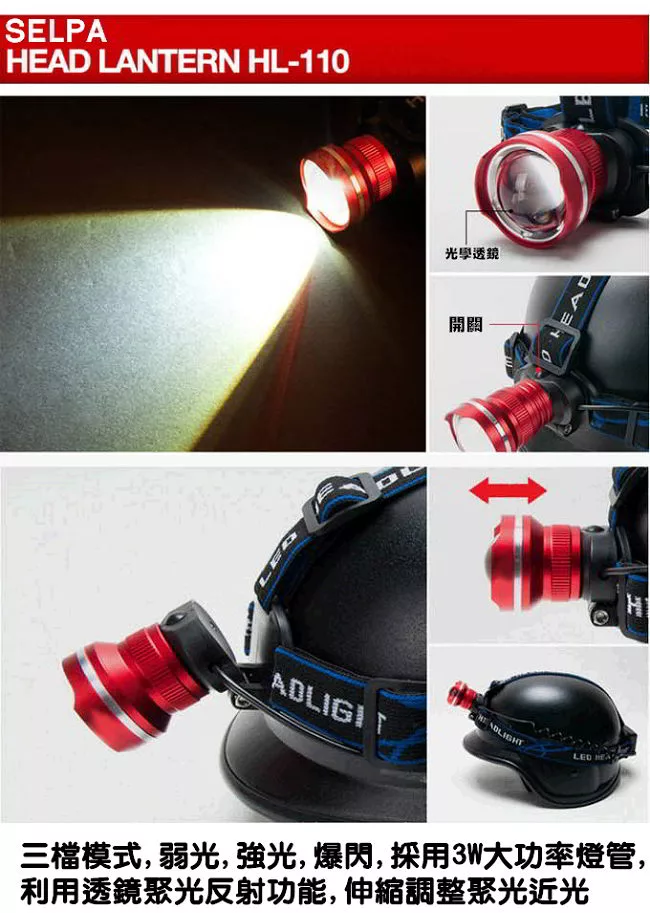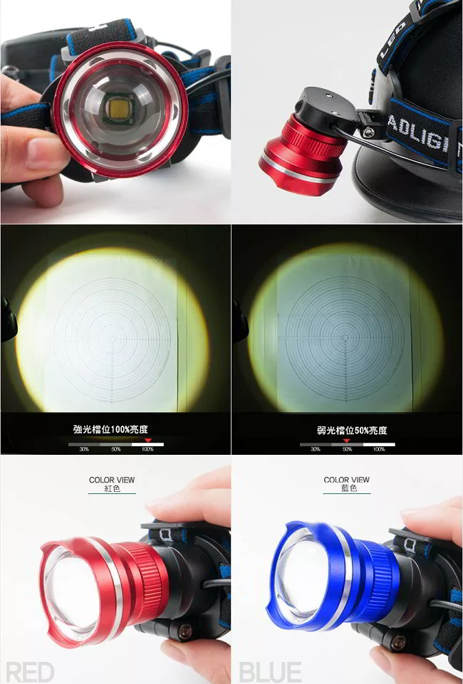 商品推薦:【韓國SELPA】T6LED伸縮變焦鋁合金頭燈紅色