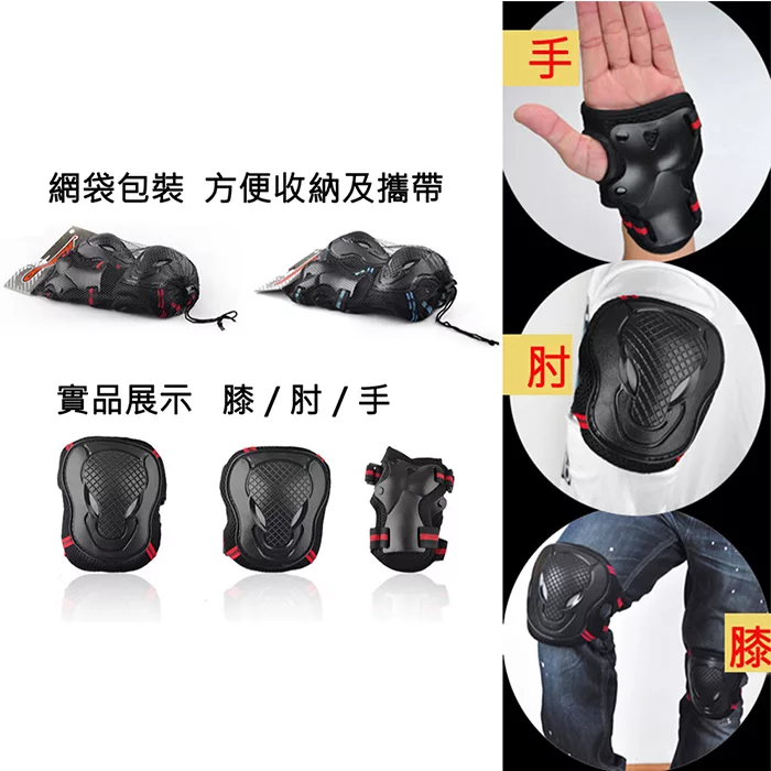 直排輪 防護用具6件組 (膝/肘/掌) 黑紅/黑藍 2色可選